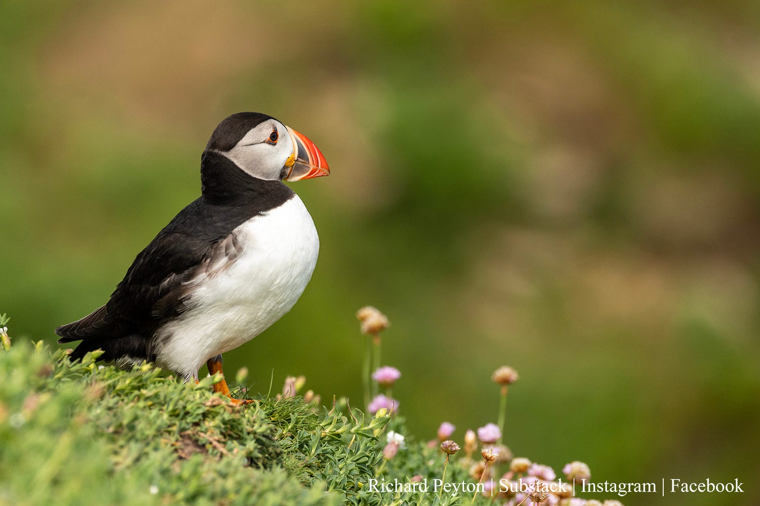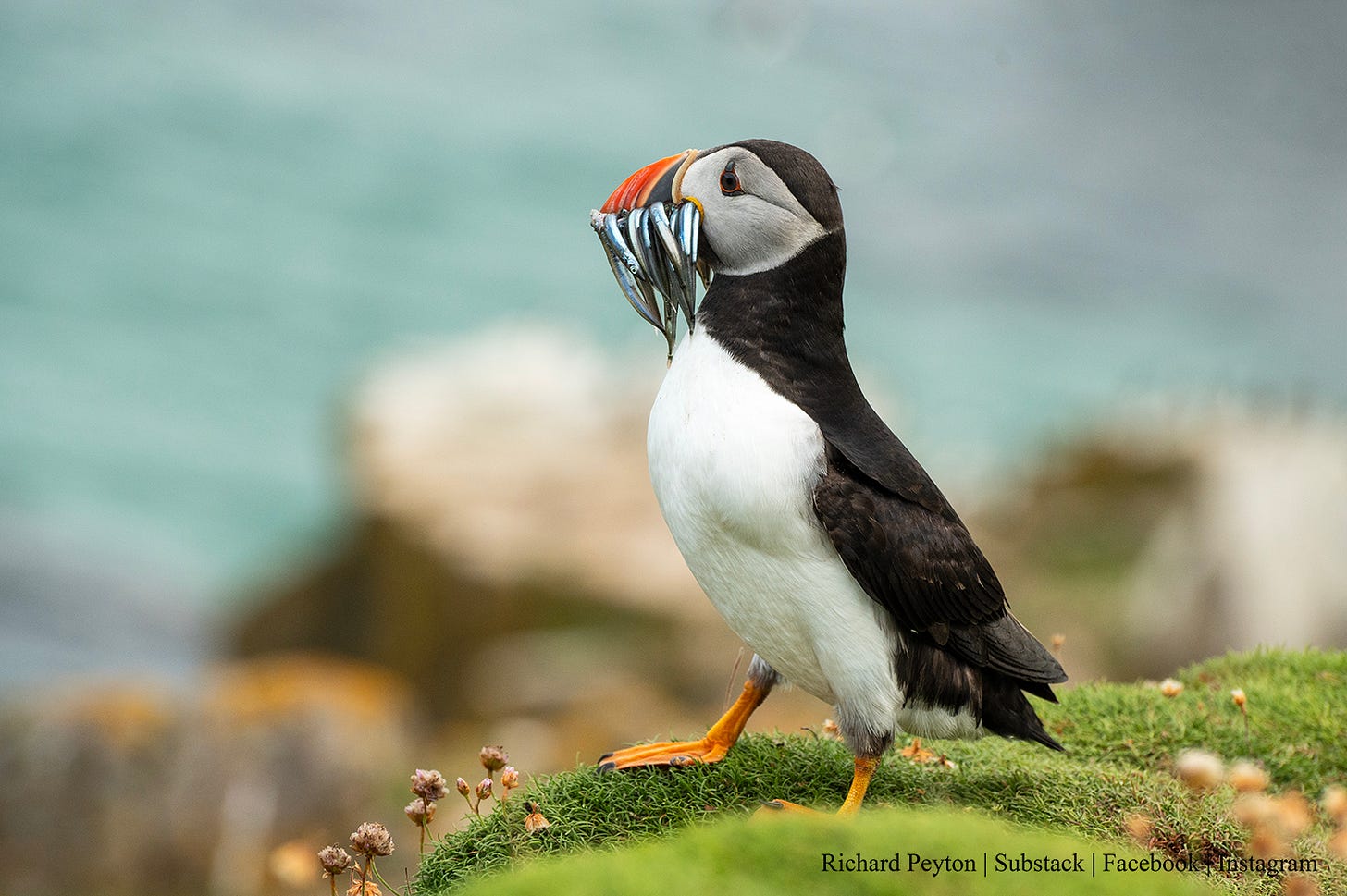After a while, the noise of the gannets seems to me to resemble that of an incessantly nagging spouse and I decide I enjoyed the Zen-like company of the puffins a lot more, and so I trek back towards them. Comparative to much wildlife generally, the colourfully beaked puffins almost seem like the wildlife equivalent of Buddhist monks and I wonder if this might be part of the reason why they are on the endangered species list. Completely unperturbed by people, they occasionally fly off and return with beaks loaded up with freshly caught herrings and also pop in and out of some of the many rabbit burrows which the island is littered with.